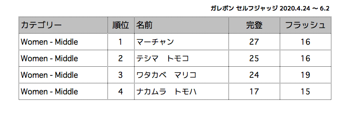 ガレーラ クライミングパーティー ガレパ!終了とリザルト発表